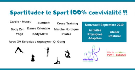 Sportitudeplus : Gym Cardio Renfo, Body Zen, Zumba, Danse Orientale, Marche Nordique, Pilates, Yoga, bodyART, Cani Rando, Activités Physiques Adaptées, Qi Gong, Aquagym à Pont Evêque, Luzinay et Serpaize, proche Vienne et Estrablin.