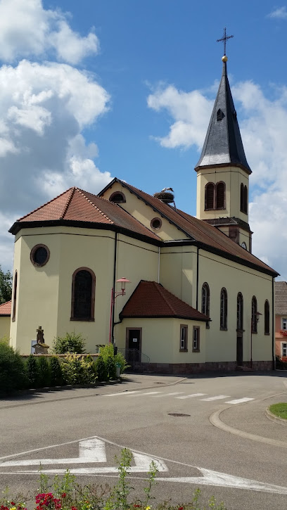 Expérience positive: Salle des fêtes facile d'accès, grand parking, et église en face avec un nid de cigognes