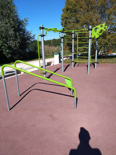 Expérience positive: Petite zone de streetworkout pour dépanner, si tu es dans la région temporairement comme moi et que tu ne veux pas rater ton entraînement. Dommage que les barres de dips sont trop espacé. Parking et base nautique a 100m